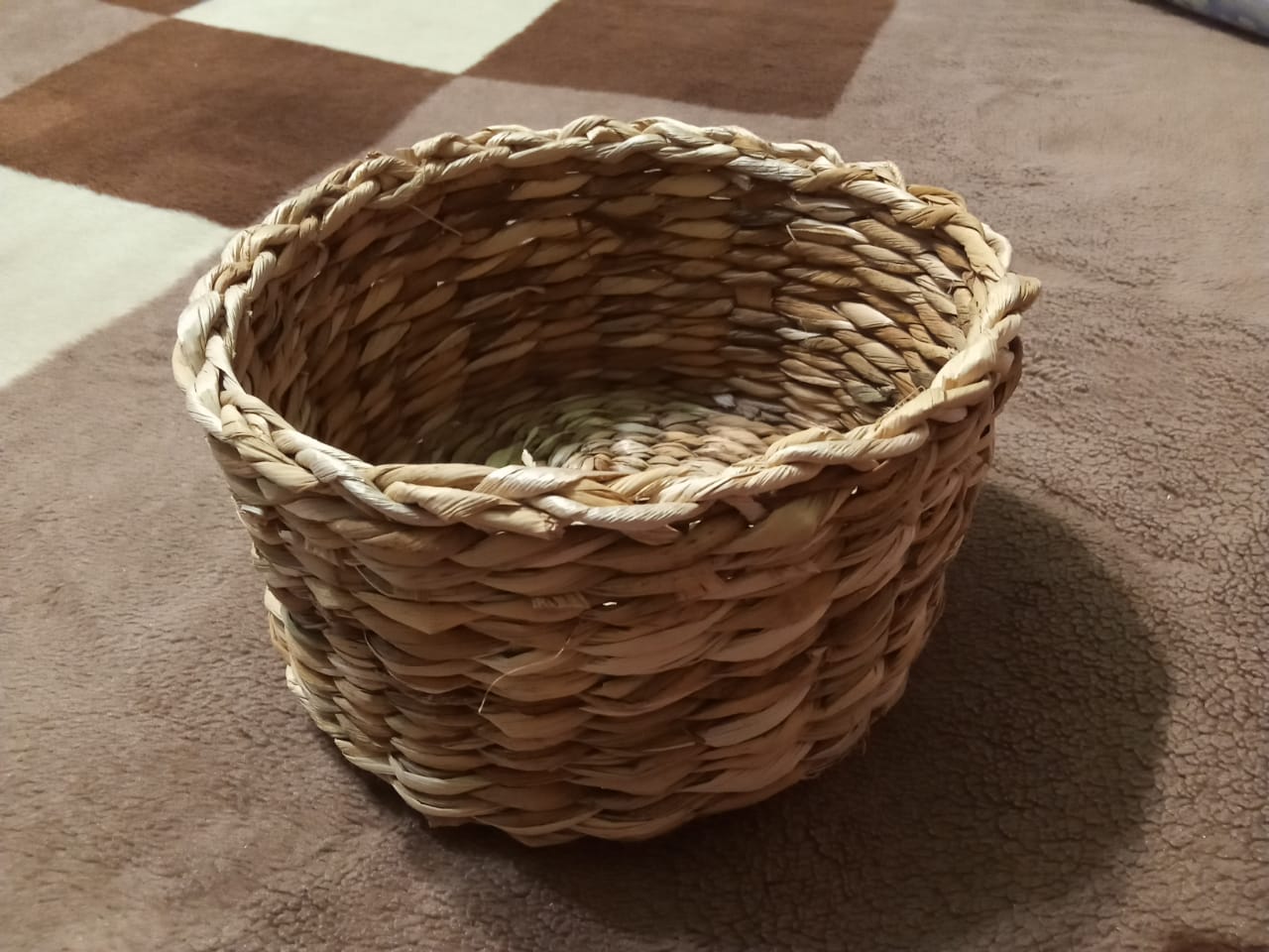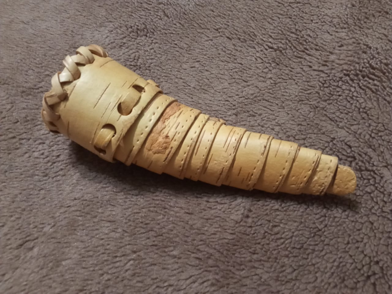 Engaged in wicker weaving and birch bark crafts.