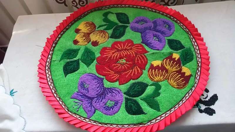 She is engaged in sewing national clothing, kurak korpe, beadwork and uses a variety of materials associated with fabric.