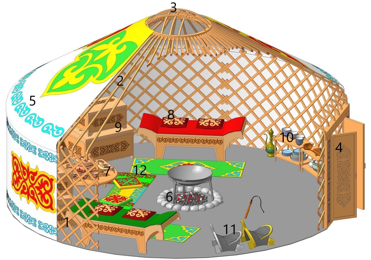 According to the rules, this game involves two players, each of them has 9 holes on the board (i.e. a total of 18 holes,"otau"), located opposite each other. Each hole has its own name: 1 — art, 2 — tekturmas, 3 — atotpes, 4 — atsyratar, 5 — bel, 6 — belbasar, 7 — kandykakpan, 8 — kokmoin, 9 — mandai. |