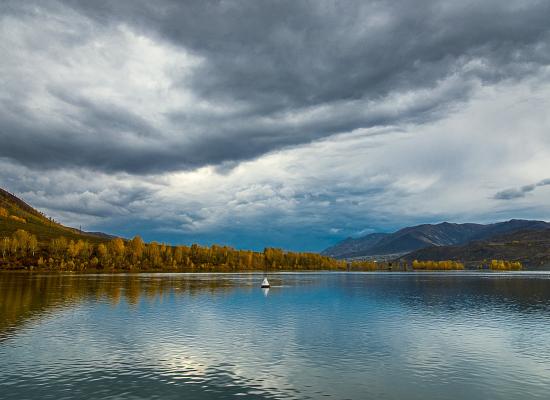 Bukhtarma water reservoir is the pride of Eastern Kazakhstan. It is one of the five largest artificial reservoirs in the world, so it is often called the Bukhtarma Sea. The area of the Bukhtarma reservoir is 5490 km2 and the length of the coastline is 425 km. At its deepest point, the water thickness reaches 59.6 m.