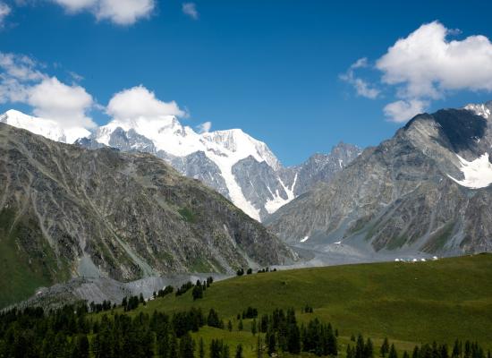 Mount Muztau (Belukha) is the highest peak of Altai and Siberia. It has two peaks in the form of irregular pyramids – Eastern (4506 m) and Western (4435 m), between which there is a depression – "Sedlo Belukhi" (4000 m). The slopes are covered with eternal snow and glaciers, from which the Belaya Berel and Katun Rivers originate. "The dwelling of the gods", "The Great Elder" – that’s how the Altai people call it. The mountain is located on the border of Kazakhstan and Russia, to the north-east of the Katon-Karagay district.