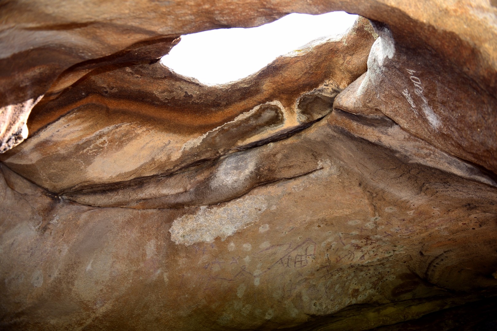 Бүгінгі күнге дейін адам, тау ешкілері, тұрғын үйлер, арбалар және басқа да әртүрлі белгілерді бейнелейтін 80-ге жуық сурет сақталған. Ақ-бауырдың жұмбақ белгілерін кейбір ғалымдар адамзат жазуының алғашқы ескерткіші деп атайды, ал басқалары ежелгі рәсімдер осында бейнеленген деп санайды. Бір гипотеза бойынша, үңнір қабырғасында 5200 жыл бұрын Жер осі ауысқанға дейін көрінетін шоқжұлдыздары бар ежелгі жұлдыз картасы бейнеленген…