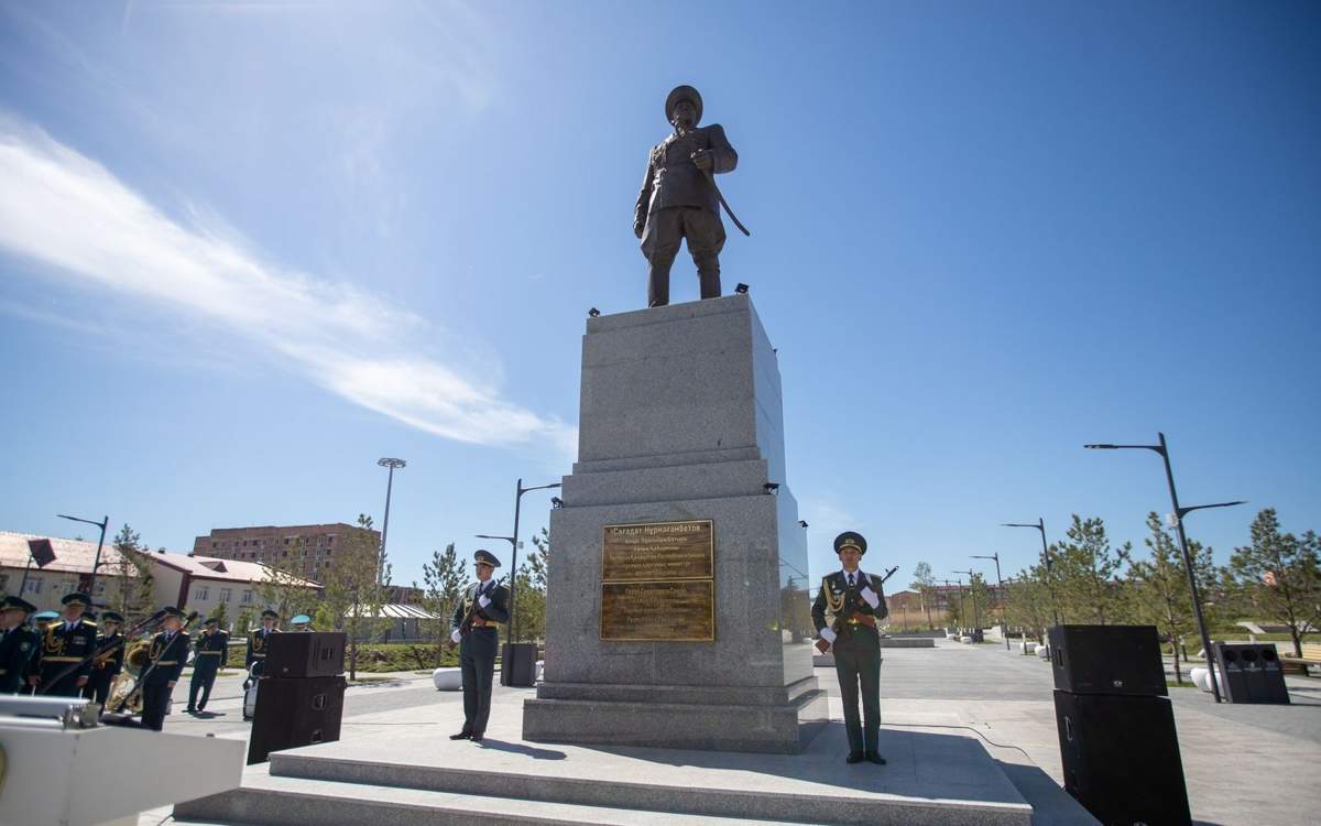 Монумент в память Герою Советского Союза, первому министру обороны независимого Казахстана, обладателю звания "Халық Қаһарманы" Сагадату Нурмагамбетову. Памятник представляет собой композицию, состоящую из постамента и установленной на нем бронзовой скульптуры с металлическим каркасом. Высота - 3,6 метра. Находится в центре одноименного парка отдыха в 19-м микрорайоне Усть-Каменогорска. Авторы проекта - известные скульпторы Нурбол Калиев и Сарсен Сеитов.